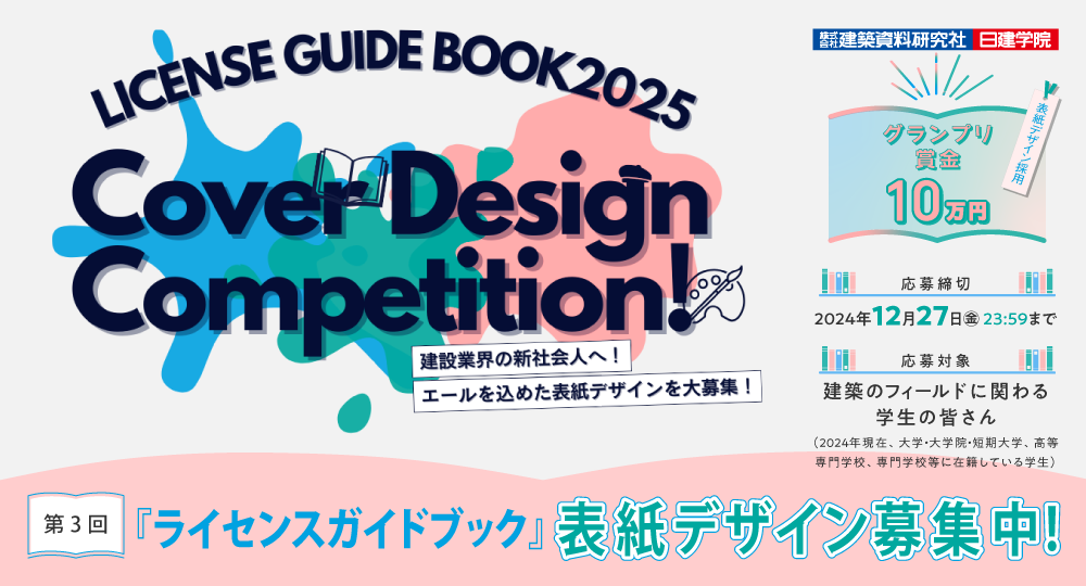 今回のコンペでは、「来年の春に新社会人として建設業界に羽ばたく方々にエールを!」をテーマに「ライセンスガイドブック」を手に取る新社会人のみなさまが前向きな気持ちになれるような表紙のデザインを募集します。