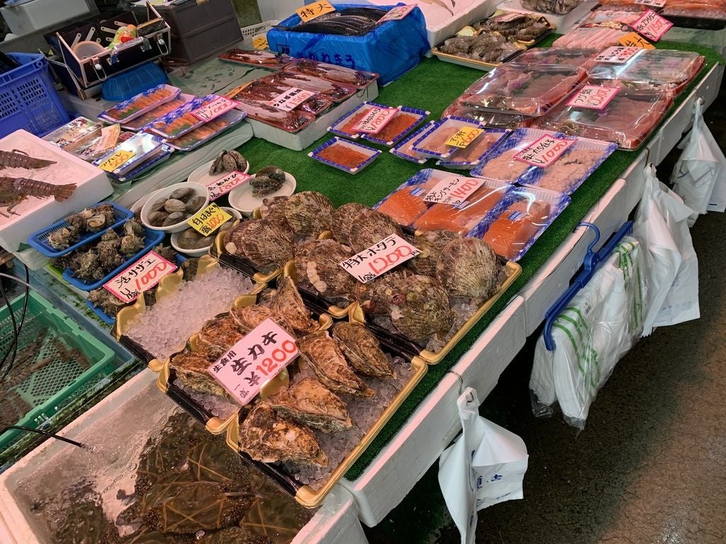 ③泉南で有名な「青空市場」でお買い物。(漁港の横の市場で海産物がおすすめ)