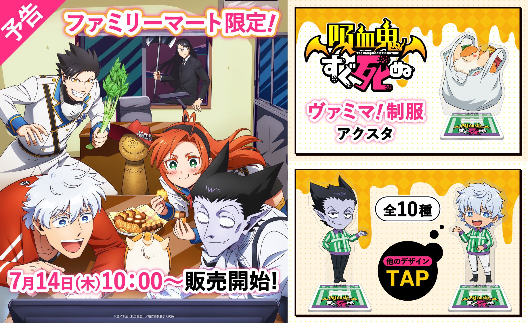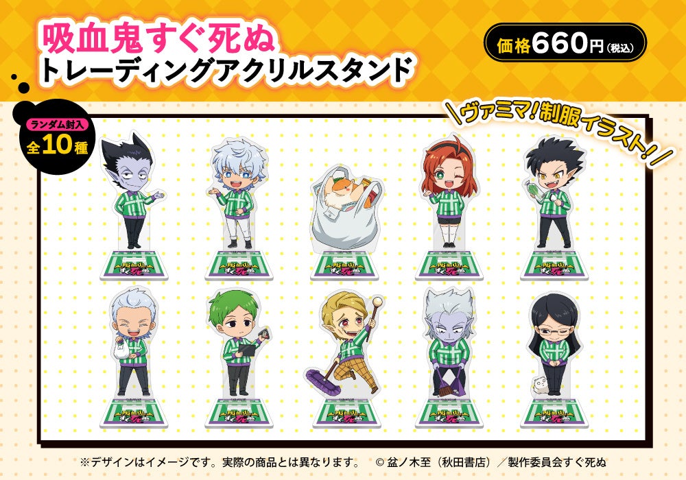 TVアニメ「吸血鬼すぐ死ぬ」のファミリーマート限定グッズが登場!制服を着たキャラクター達の描き下ろしイラストを使用した「トレーディングアクリルスタンド」が発売!