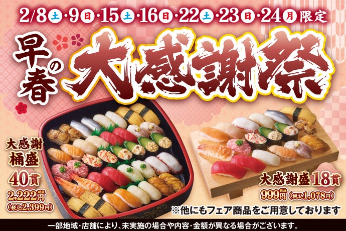 小僧寿しでは、日頃のお客様のご愛顧に感謝の気持ちを込めて!2/8(土)~お得感満載!『早春の大感謝祭』を開催いたします!