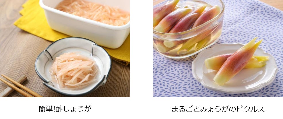 初夏の旬素材である「新しょうが」「みょうが」は「カンタン酢」を掛け合わせた「漬ける」レシピメニューをご提案。薬味だけではない、新たなおいしさを再発見できるレシピメニューになっています。
