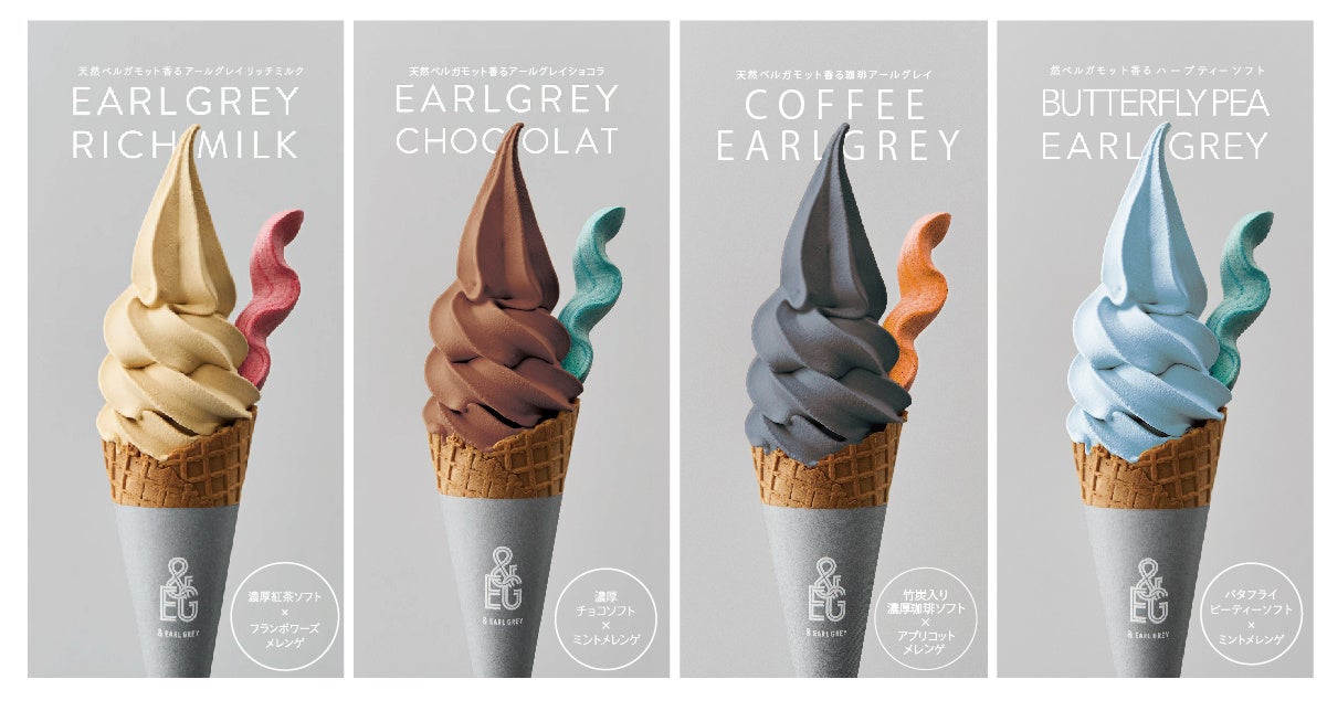 紅茶で作った「アールグレイリッチミルク」をはじめ、ソフトクリームやジェラートでも人気のバタフライピーアールグレイなど全5種類が登場。