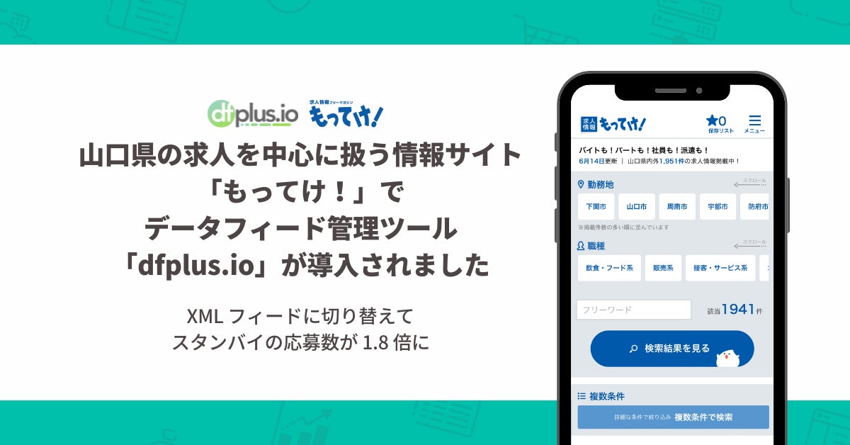 山口県の求人を中心に扱う情報サイト「もってけ!」でのデータフィード管理ツール「dfplus.io」導入事例が公開されました