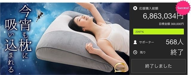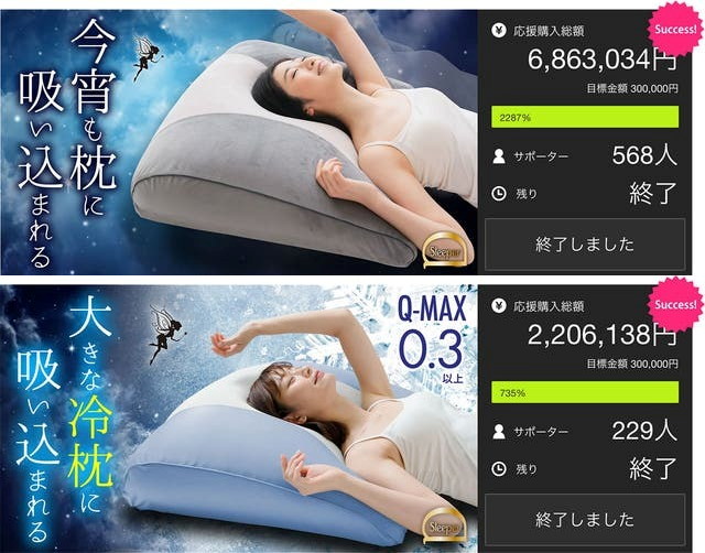 第1弾の超熟プレミアム枕は2287%を達成。第2弾のCOOL超熟プレミアム枕は735%を達成。2つのプロジェクトを合わして797名の方に応援購入頂きました!