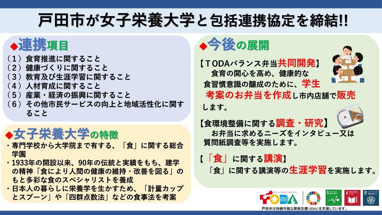 埼玉県戸田市と学校法人香川栄養学園 女子栄養大学が包括連携協定を締結します