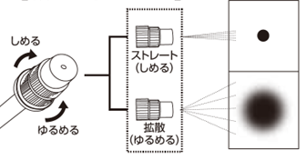 ノズル先端を調整することでストレート・拡散の切り替えができます。