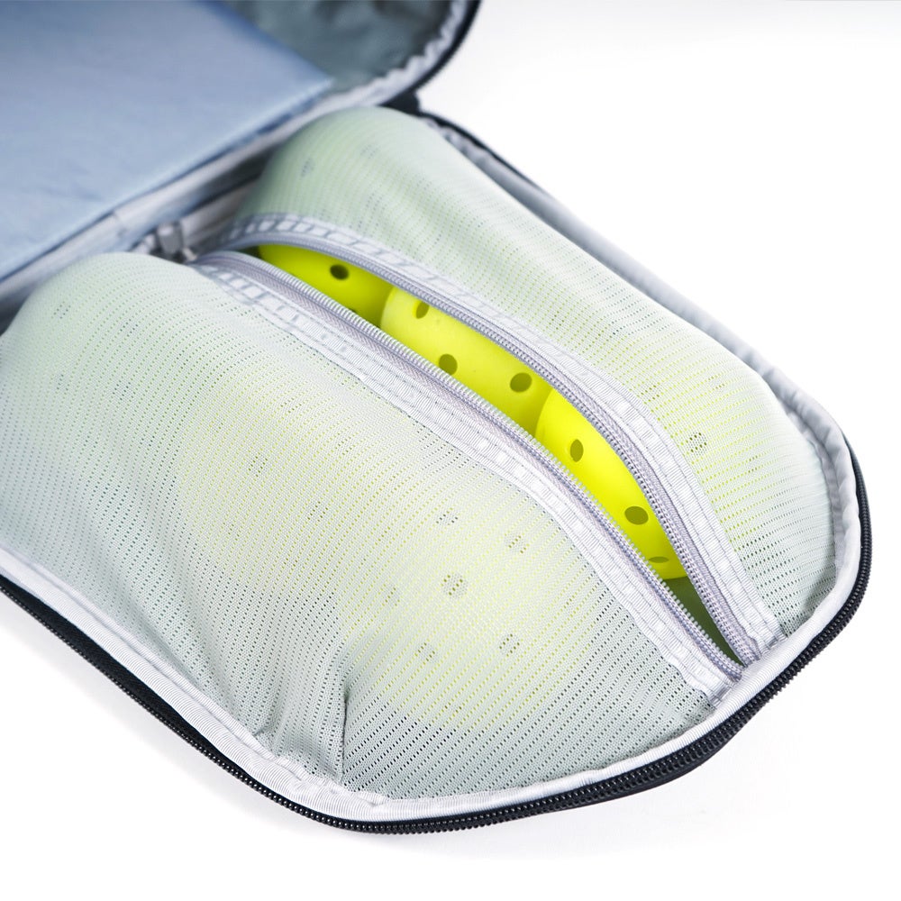 本製品は、30代〜50代のビジネスパーソンをターゲットに、「仕事帰りにそのままコートへ向かう」ライフスタイルを想定して開発されました。独特なサイズ形状を持つパドル(ラケット)やシューズを保護する専用機能を備えつつ、オフィスや電車通勤でも違和感のない「Blend-in(都市に馴染む)」デザインを採用。オンとオフを分けない、現代の大人のためのピックルボールキャリーギアです。