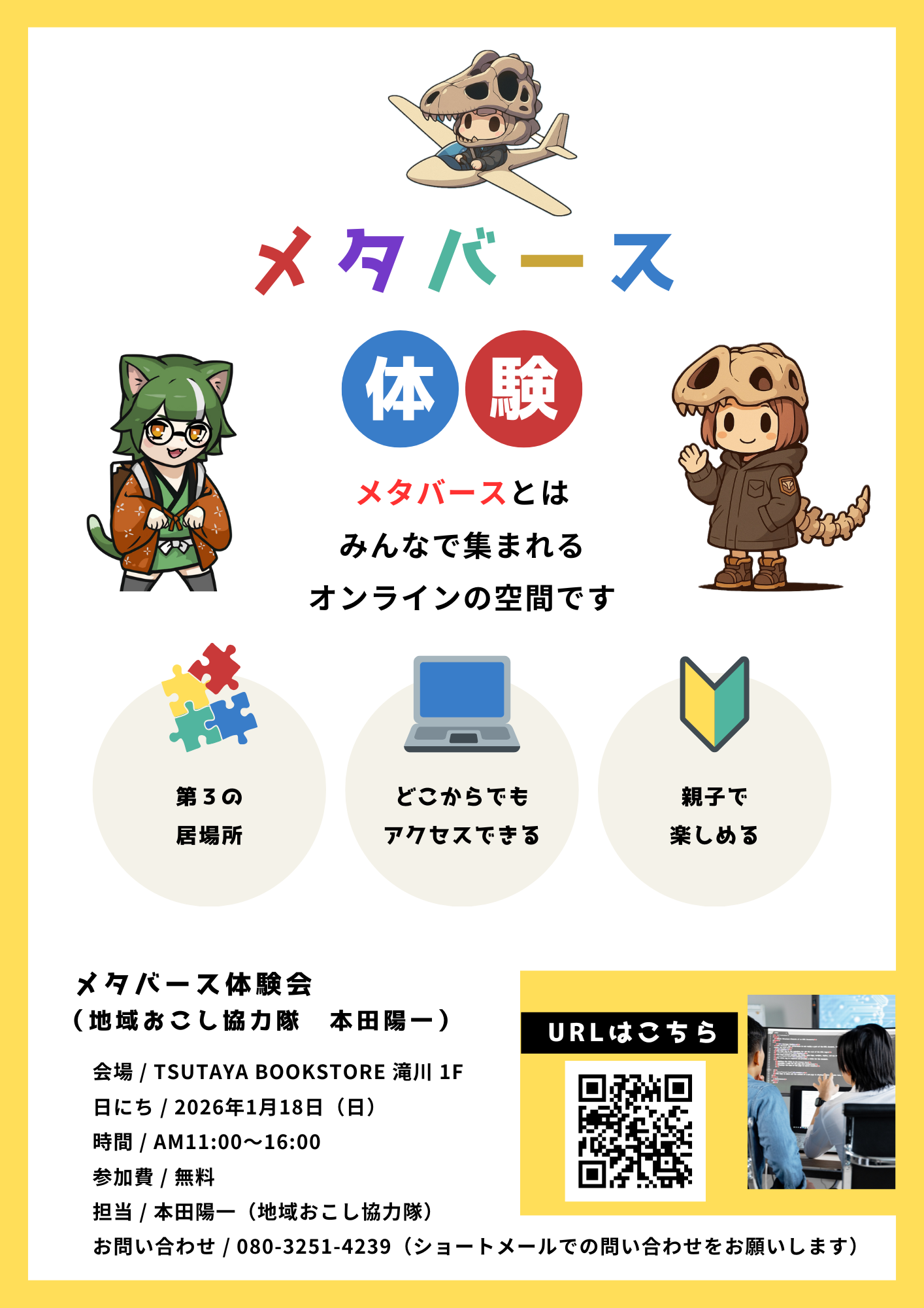 滝川のこどもたちに、「もうひとつの居場所」をつくりたい——その第一歩が今回のメタバース体験会です。ゲームではなく、安心して集まれるオンラインの広場として、親子で気軽に未来の居場所づくりを体感してもらえたらうれしいです。