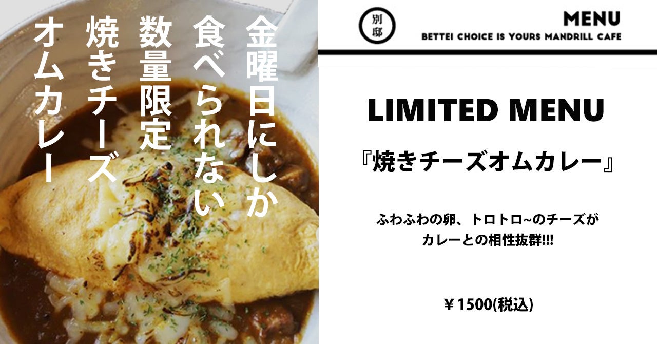 大阪府和泉市に本社をおく株式会社antiquaの本社屋横で2022年11月のオープンから地域の皆様に愛され続けるカレー屋『BETTEI 別邸 ‐choice is yours MANDRILL CAFE‐(以下:マンドリルカレー別邸)』が、2024年9月3日(火)より「焼きチーズオムカレー」「レトロプリン」「抹茶ラテ」など新メニューの取り扱いを開始しました。また、10月31日(木)まで期間限定でアマヤー生豆のスペシャリティコーヒーを無料でお試しいただけるクーポンを配付中です。この機会に是非マンドリルカレー別邸で美味しいひとときをお楽しみください!!