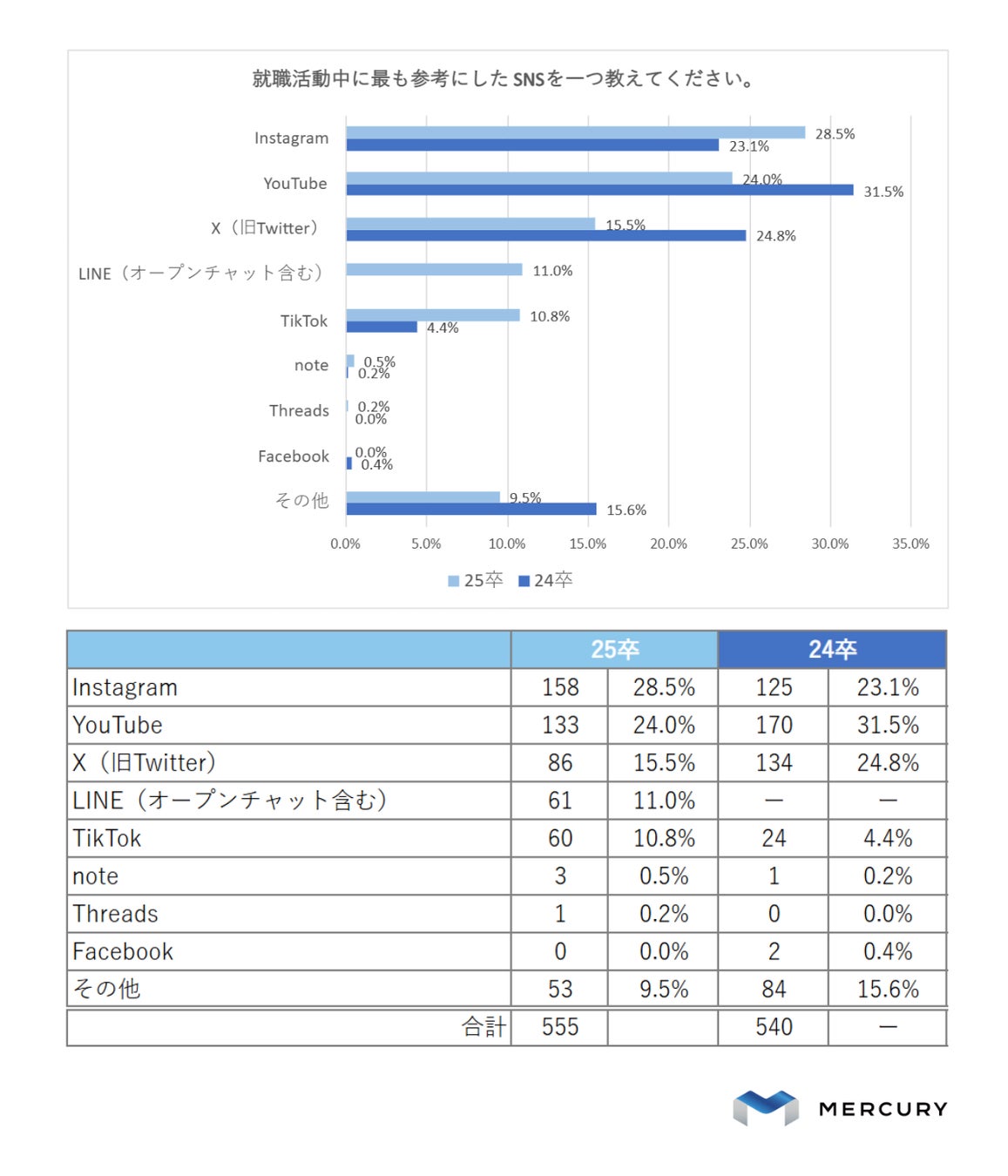 多様な人材の登用・育成を通して関わる人を豊かにする人材サービス会社、株式会社マーキュリー(本社:東京都新宿区西新宿1-26-2新宿野村ビル23階、取締役社長:秋間 剛、以下「マーキュリー」)は、2025年4月入社の内定者(※)を対象に「就職活動に関するアンケート調査」 (有効回答数 2025年: 555名/2024年:540名) を実施しました。 本リリースでは、Z世代の就活生が企業との接点としてどのようなSNSや情報源を重視していたのか、また、注目される選考特典の傾向についてお知らせします。