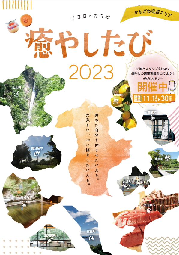 「ココロとカラダ癒やしたび」をテーマとして、スマートフォンで気軽に参加でき、素敵な賞品が当たる「かながわ県西デジタルラリー」を実施します。