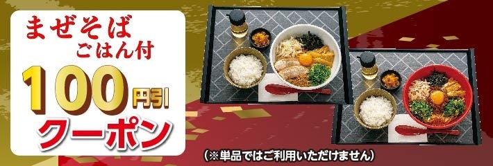 宮本むなし公式アプリでは、販売期間中に何度でも使える「まぜそば(ごはん付)各種100円引き」クーポンを配信いたします。会員の方限定でご利用いただけるクーポンですので、この機会にぜひ宮本むなし公式アプリをダウンロード&会員登録ください。