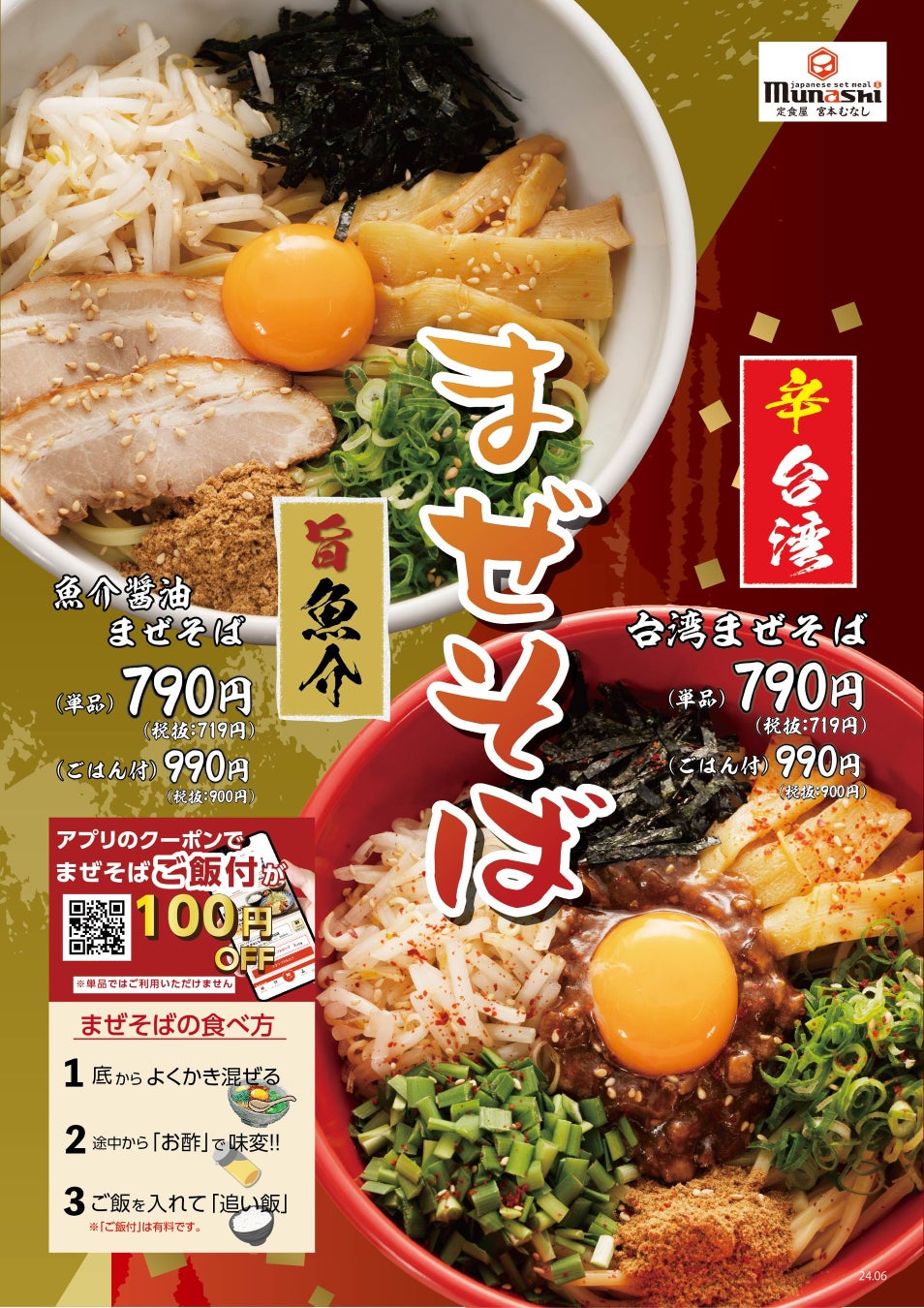 M&Sフードサービス株式会社(本社:大阪府大阪市、代表取締役社長:夏井 克典)が運営する定食チェーン「定食屋 宮本むなし」では、とろみのある濃厚な「魚介醤油まぜそば」と名古屋発祥の「台湾まぜそば」の2種を2024年6月19日(水)より期間限定で販売開始します。