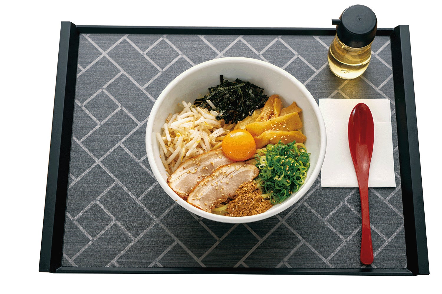 濃厚な特製ダレをしっかりと味わえる「まぜそば(単品)」と、ご飯と一緒にガッツリ食べたい方向けに「まぜそば(ごはん付)」をそれぞれご用意いたしております。ごはん付きの場合は残ったスープにご飯を加え、最後の一滴までお楽しみください。