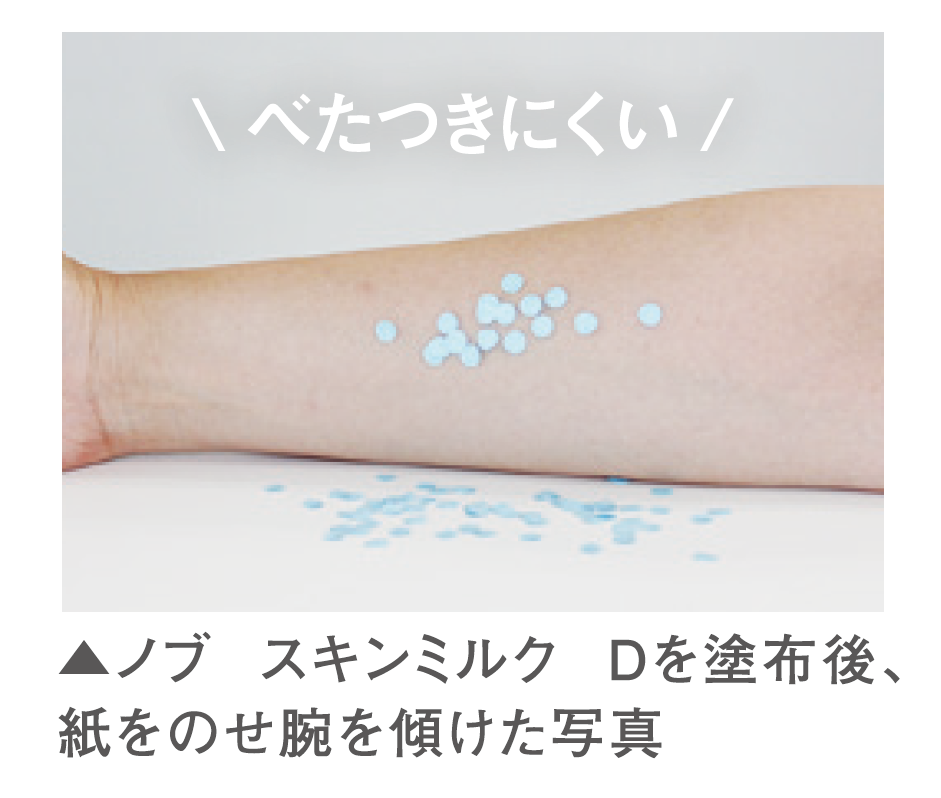 このたび発売する「ノブ スキンミルク D」は、乾燥や肌あれを防ぎ、お肌をなめらかに保つ低刺激性の全身用保湿乳液です。厳選した保湿成分(ワセリン、スクワラン、コレステロール※1、ヒアルロン酸Na、アミノ酸※2)を配合し、べたつかずしっとりとうるおいを与えます。全身にのばしやすい乳液タイプで、顔にもからだにも、ご家族全員でお使いいただけます。