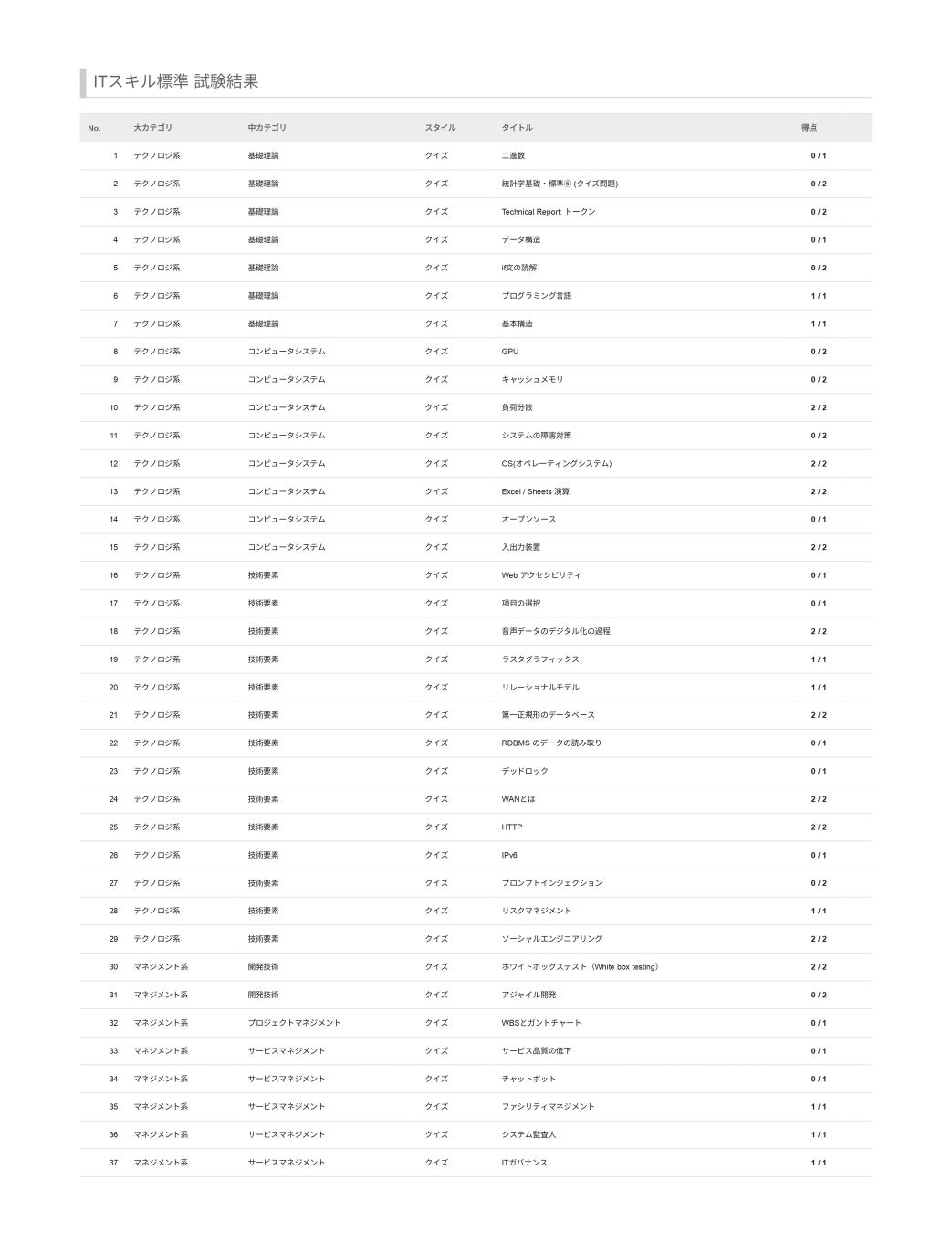・新入社員向けの入社前アセスメント、研修後アセスメント ・既存従業員のスキルの可視化 |