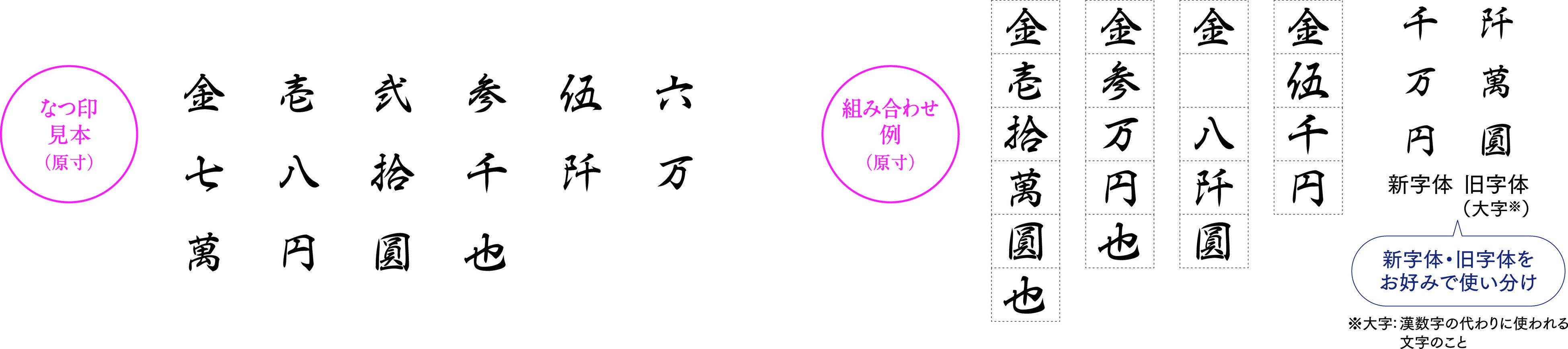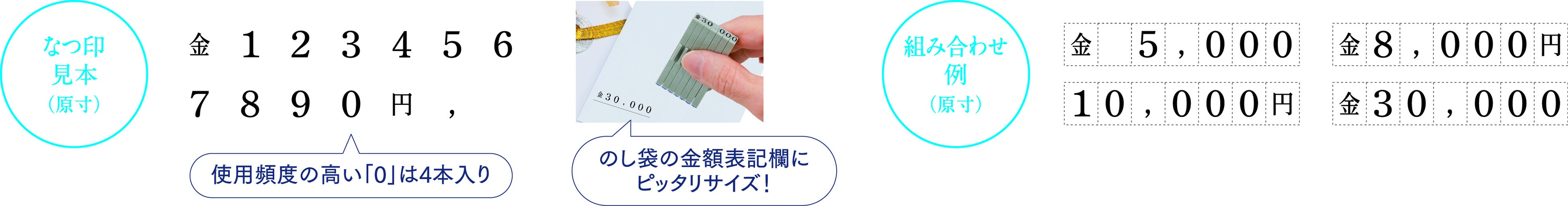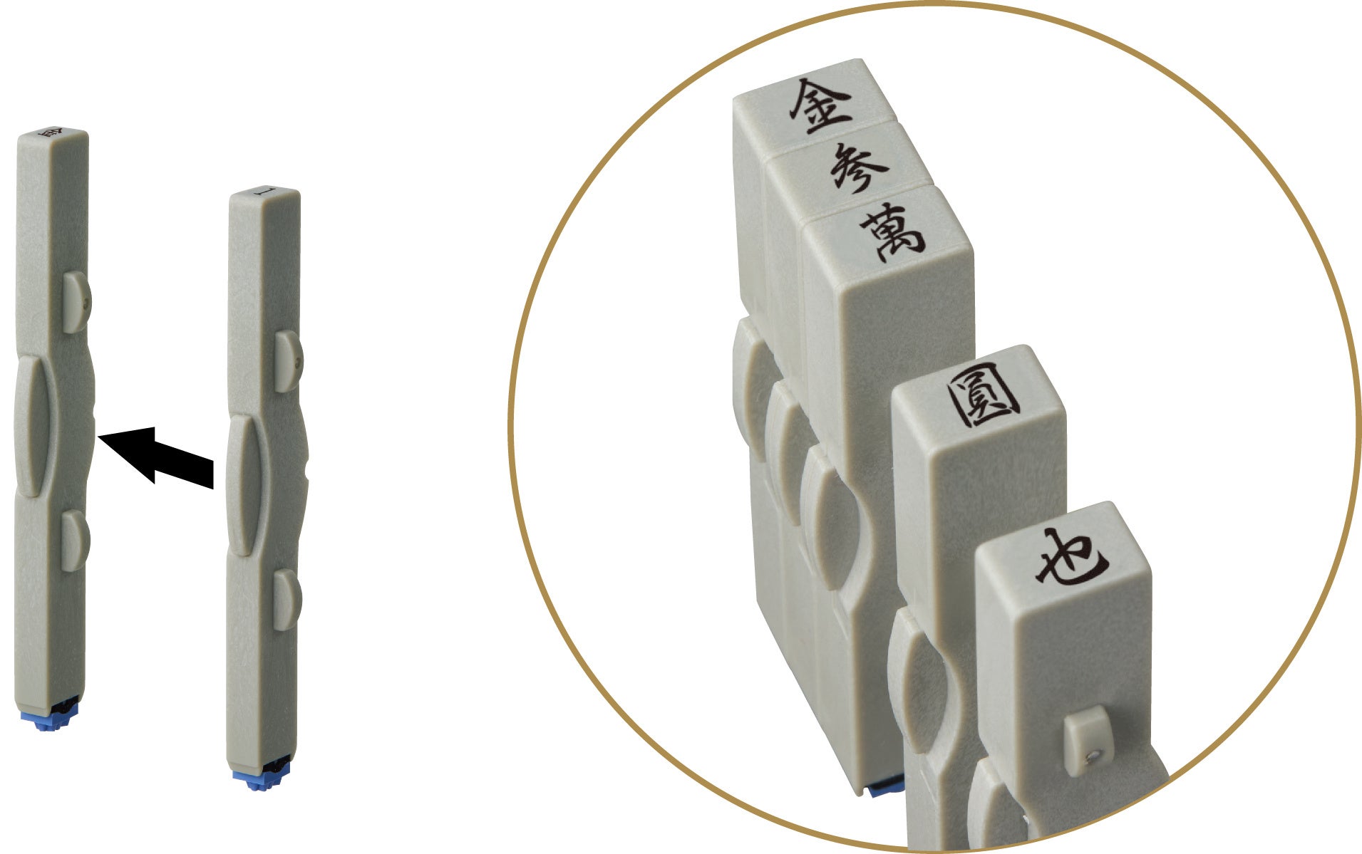 ・組み合わせてさまざまな金額表記ができる連結式ゴム印