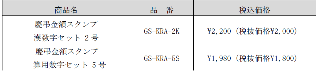 「慶弔金額スタンプ」は、慶事や弔事に使うのし袋の金額欄にポンッとひと押しするだけで金額表記ができる連結式ゴム印と慶事・弔事どちらにも対応できる黒と薄墨の2つのスタンプパッドがセットになっている商品です。日常生活であまり使うことのない旧字体と新字体が使い分けられる漢数字セットは、漢字や筆書きが苦手な人におすすめです。また、算用数字セットもあり、さまざまな書式やシチュエーションで使い分けることができます。すでに販売されている「慶弔おなまえスタンプ」と一緒に使えば、のし袋への表記をカンタン、キレイに仕上げられます。