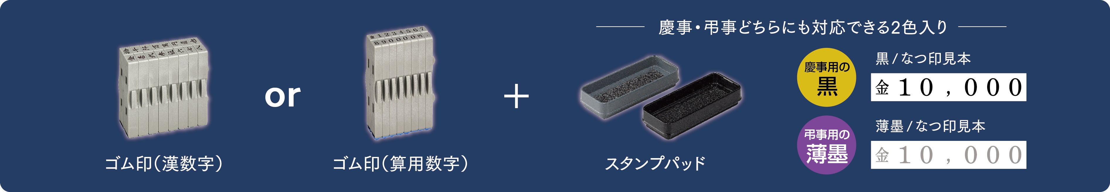 ・2色のスタンプパッドで慶事・弔事どちらにも対応可能
