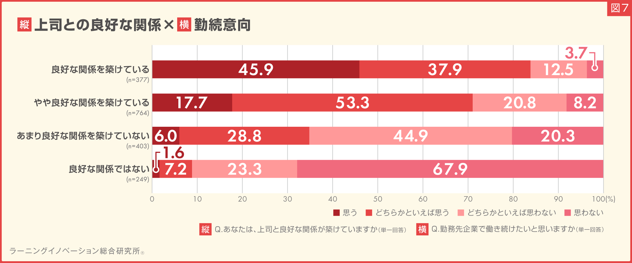 6.上司と良好な関係が築けている若手社員、8割超が勤続意向あり。良好でない層は1割未満
