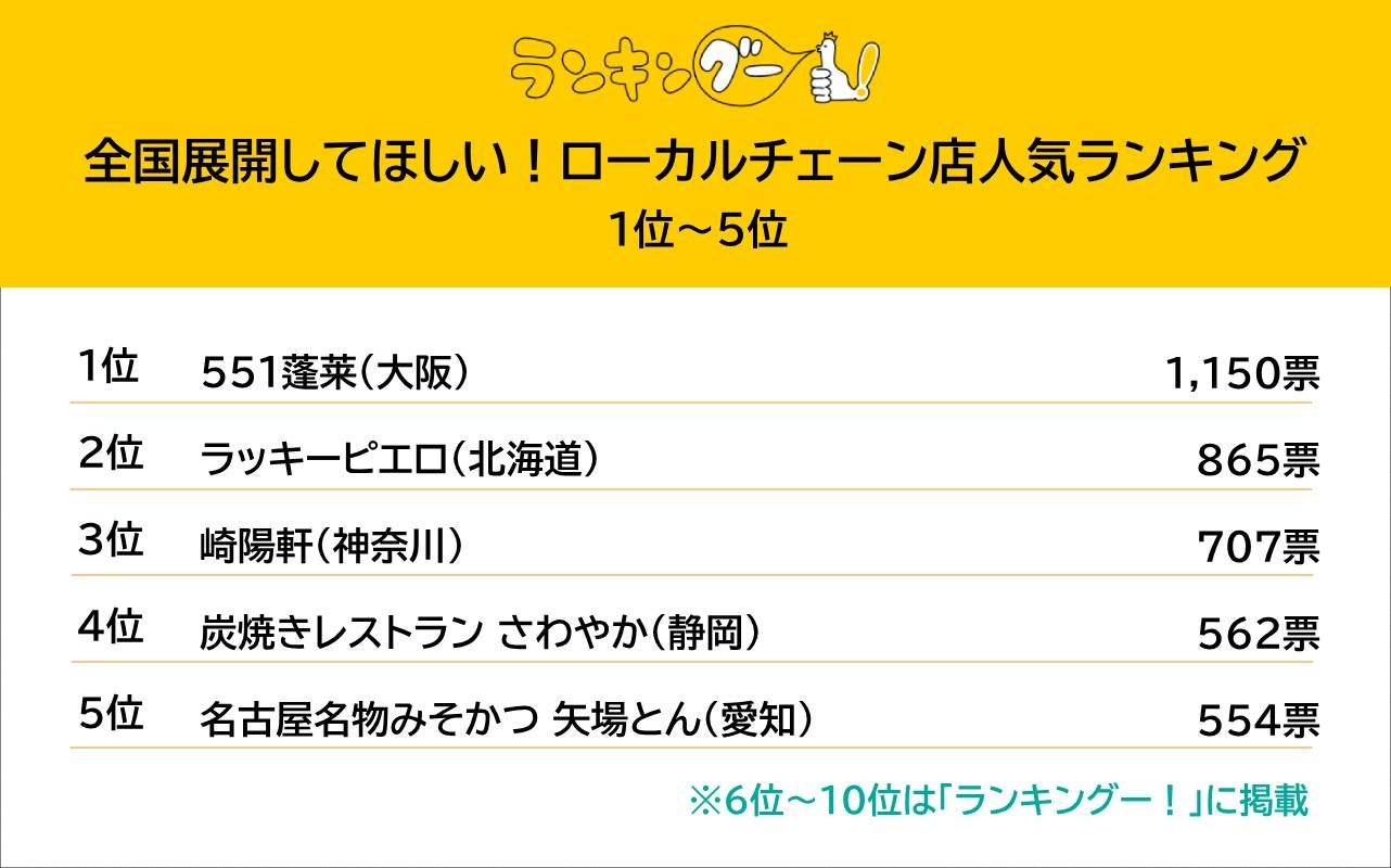 ◆全国展開してほしい!ローカルチェーン店人気ランキングTOP5抜粋