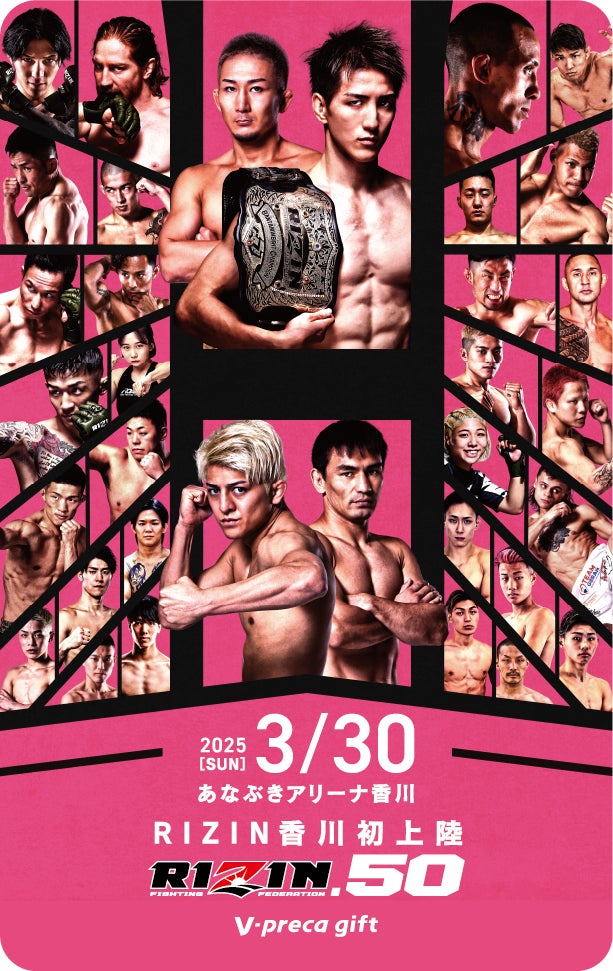 通常、Vプリカオンラインショップのみでの販売となりますが、2025年3月30日(日)、あなぶきアリーナ香川で開催される「RIZIN.50」会場での販売を実施します。