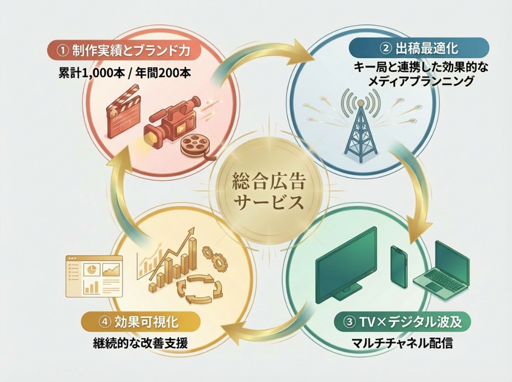 制作・出稿・検証・改善までを一体で設計し、“伝えたい想い”を“届いて響く成果”へと変える、次世代型の広告運用を実現します。