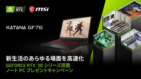 これからの新生活を応援するため、「新生活のあらゆる場面を高速化」する「GeForce RTX 30 シリーズ搭載ノートPC」のひとつである、MSI社の「Katana GF76シリーズ」を1名様にプレゼントするキャンペーンも実施します。