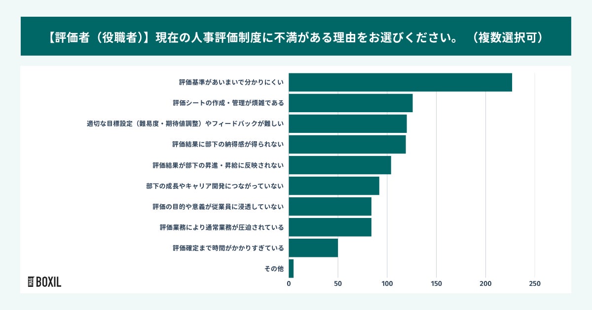 【BOXILアンケート調査】人事評価制度でもっとも多い現場の不満は「評価基準のあいまいさ」