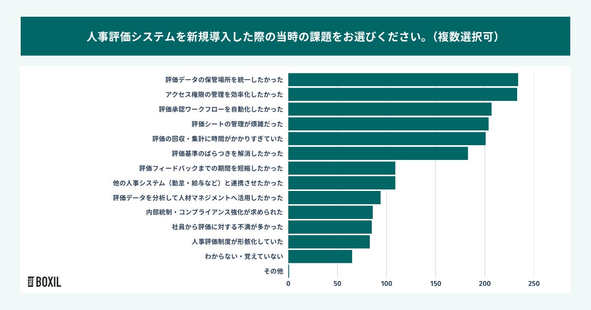 人事評価システム導入前の課題は「評価データの保管場所」、次いで「アクセス権限の管理」