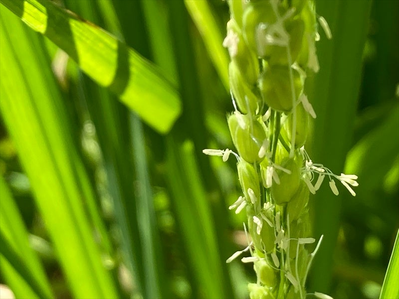 田植えから稲刈りまでの作業は、主として他の社員とともに手作業で行いました。例年6月中旬に行っていた田植えを、日照時間を最大限に活用できるよう少し早めの5月に行いました。梅雨入り以降、雨も少なく夏のような日が続き、茎も増え密度が濃くなるなど日々生長が見えました。7月には記録的な猛暑が続き、日差しがますますきつくなったことで、水の蒸発が早く水量の管理には気を使いました。1か月で20cm超伸びていた稲は、8月を迎えても続く猛暑の影響か、若干生長ペースが遅くなっている気がしましたが8月終わりに無事出穂を確認することが出来ました。9月には豪雨や台風の接近など不安定な天候に、稲が倒伏しないかなど不安もありましたが大きな被害を受けることもなく、1年間大切に育てることができました。