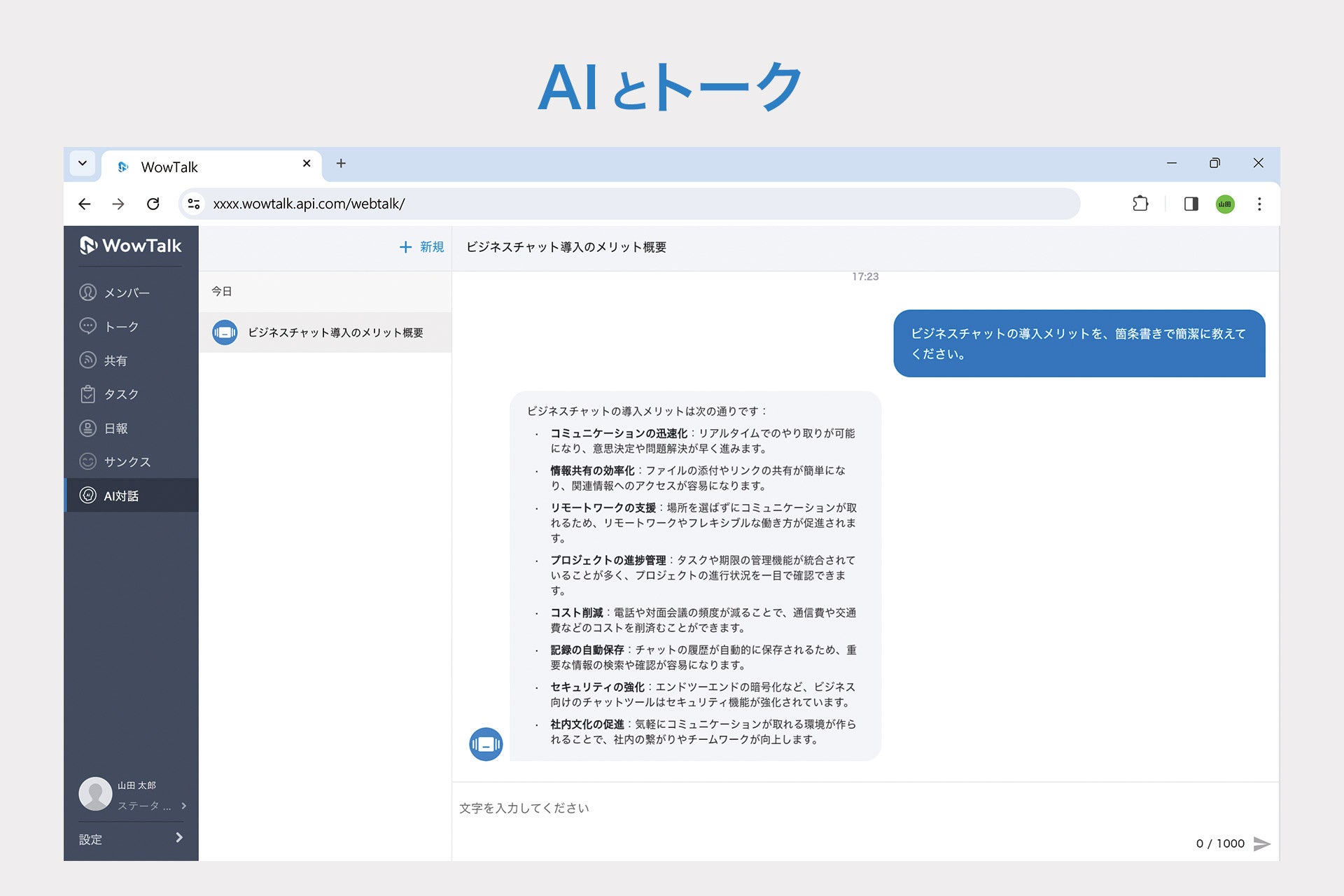 ビジネスチャット・社内SNS「WowTalk」、ラインアップを拡充して生成AIチャットサービス「WowTalk AI」の正式提供を開始