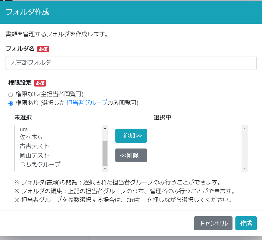 担当者(担当部署)以外の許可されていない方にフォルダの内容を確認出来ないように制限する機能です。