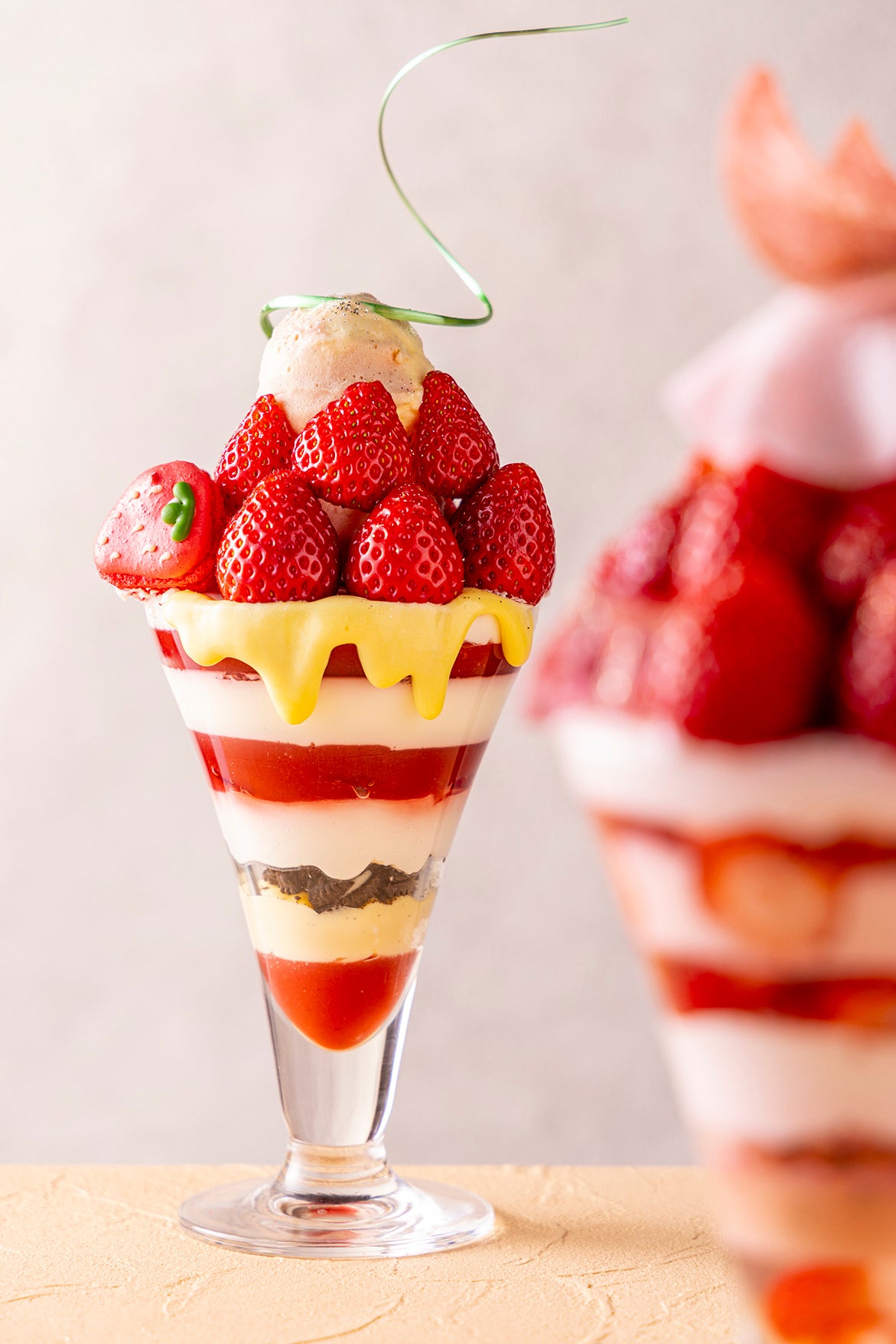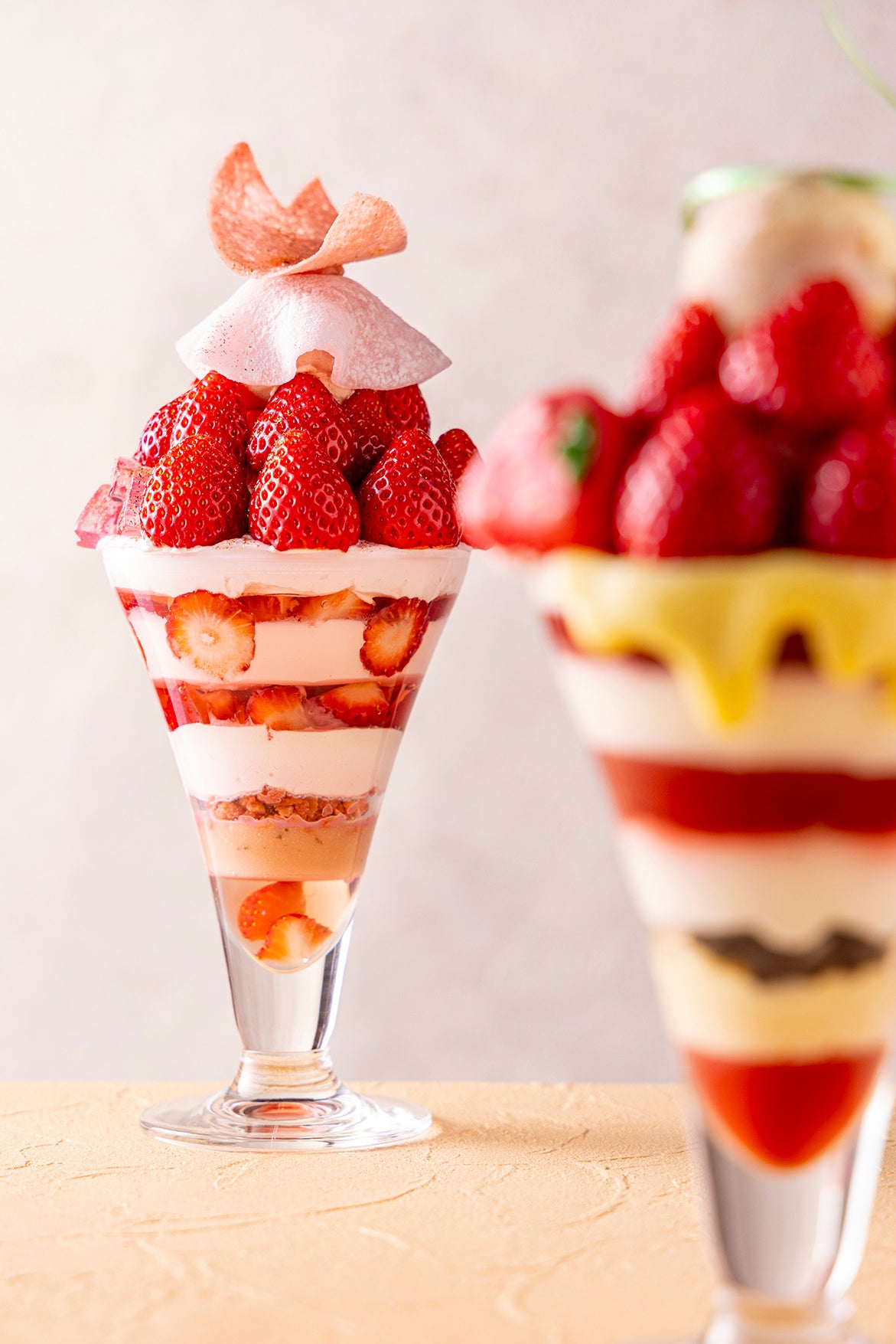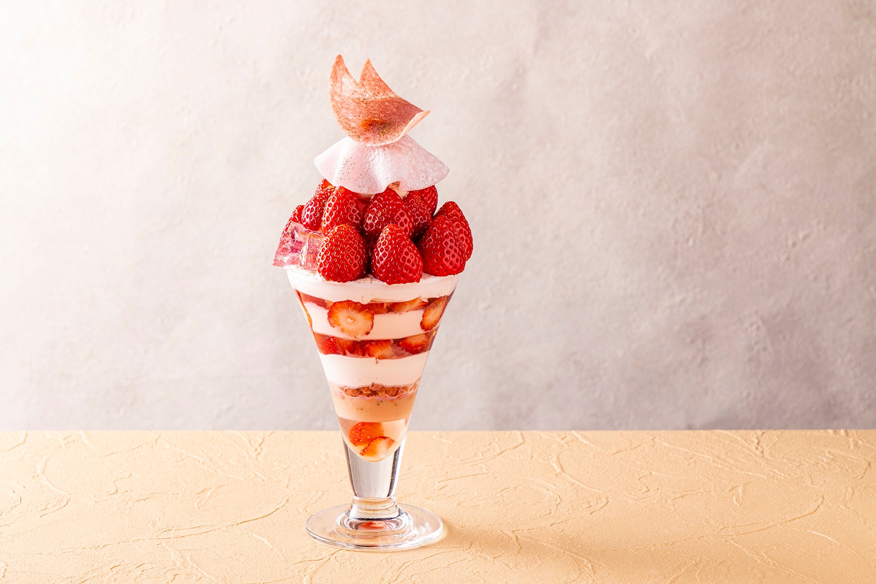 3月1日(土)からは、桜といちごをテーマに春の装いで仕立てた、華やかなパフェ2種をご提供いたします。和の趣を感じる「さくらいちごパフェ」と、濃厚な味わいが魅力の「ストロベリーチーズパフェ」。それぞれに異なる味わいのハーモニーと、五感を刺激する緻密に計算されたクリエイティビティに魅了される至福の時間をご堪能ください。