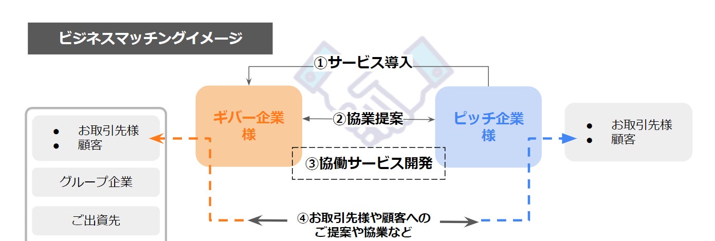大手・成長企業、投資家(以下ギバー企業)に対して、「ONLY STORY」「チラCEO」会員企業(以下ピッチ企業)がプレゼンをするイベントです(※)。ギバー企業に対して、事前に現状の経営課題やニーズを伺った上でピッチ企業を探すため、ギバー企業は会いたいと思っている業種・業界の企業に会うことができ、イベントで企業の詳細を知ることができます。