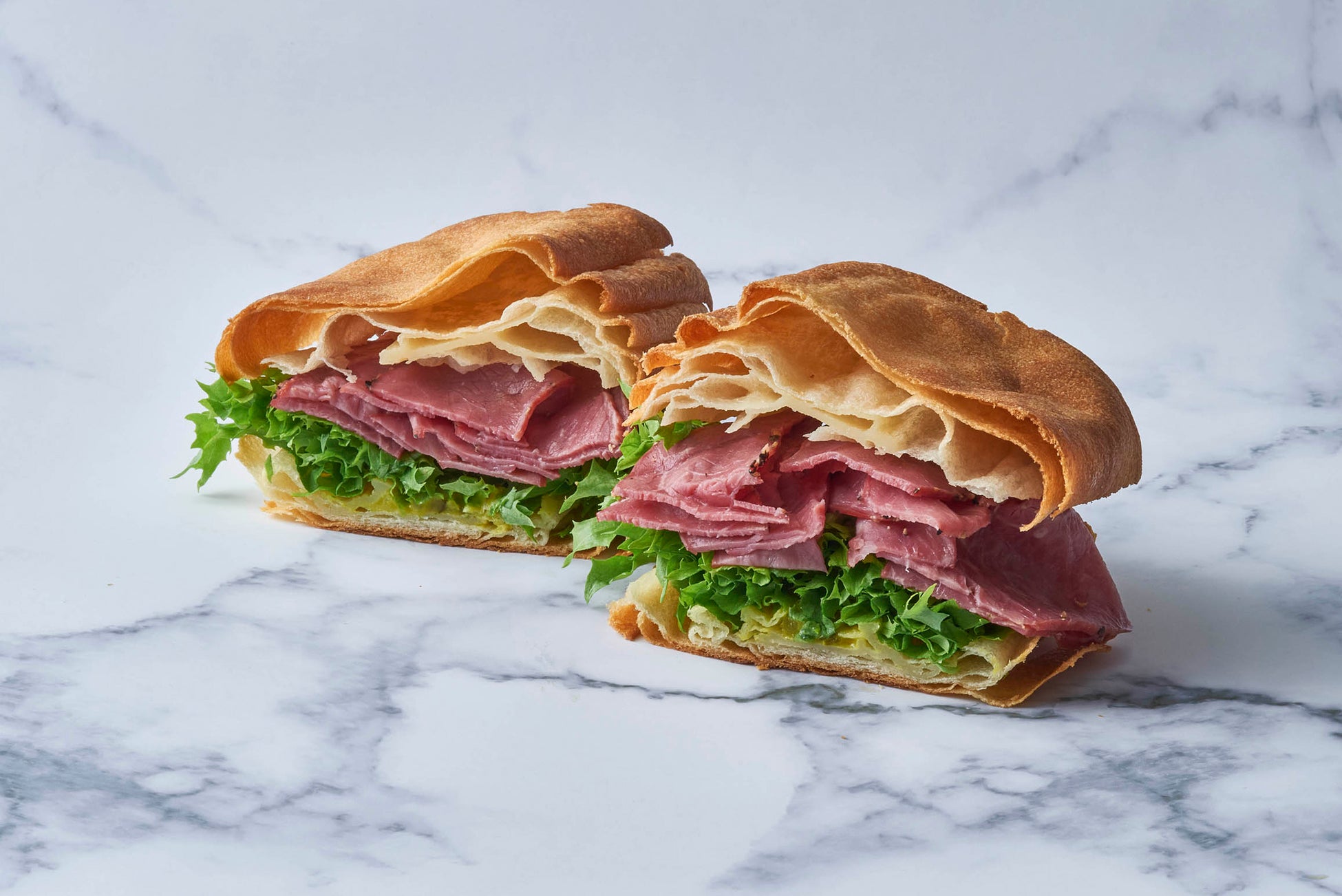 オリジナルクロワッサンに、たっぷりのパストラミとクイーンレタスをサンドしました。ハニーマスタードソースでさっぱりと仕上げています。食べ応えのあるボリューミーなクロワッサンサンドです。(銀座店のみ取扱がございません)