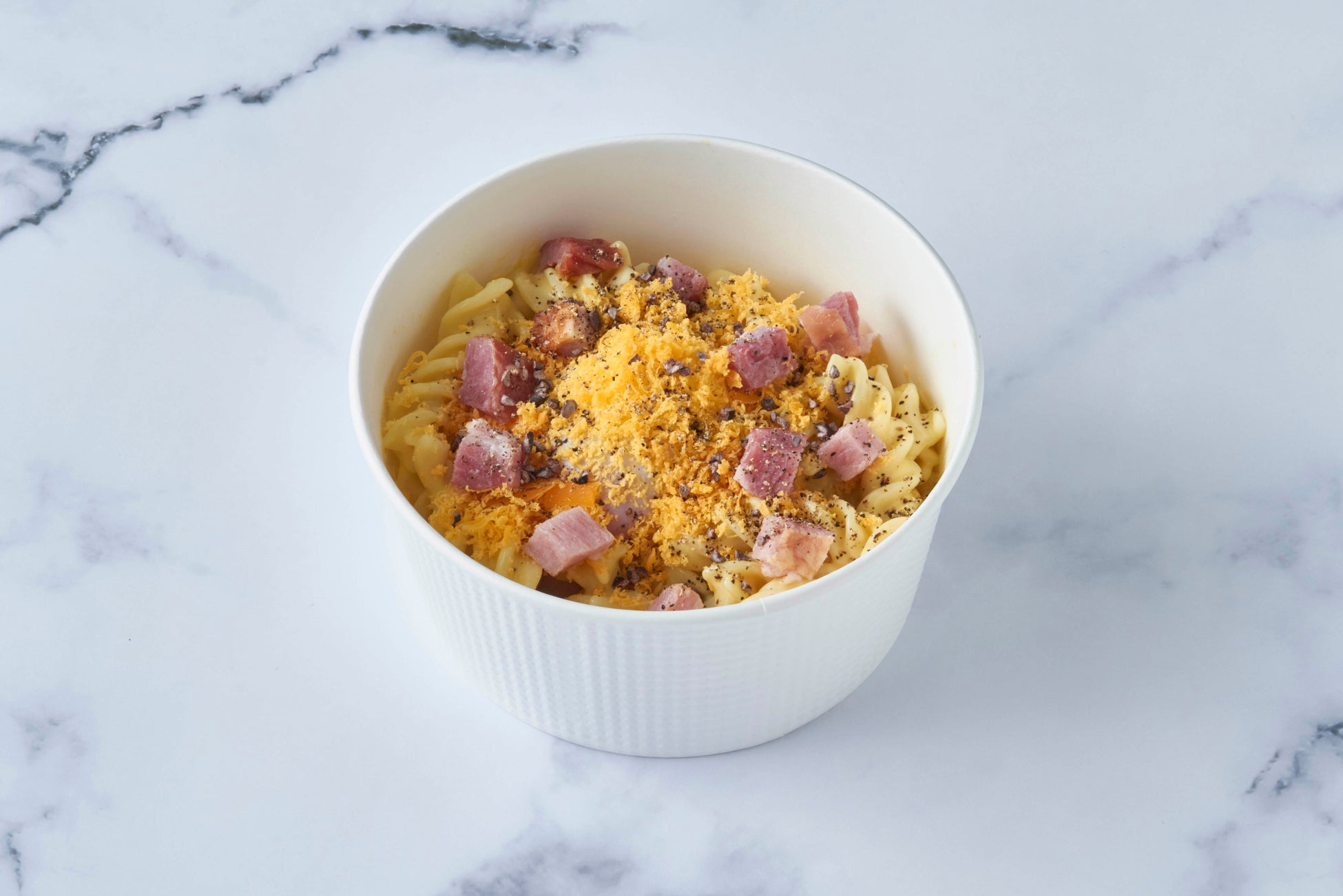 ゴディバカフェで人気のカルボナーラが新しくなります。ミモレットチーズと温泉卵をよく混ぜて、カカオペッパーをたっぷりかけてお召し上がりください。(銀座店のみ取扱がございません)