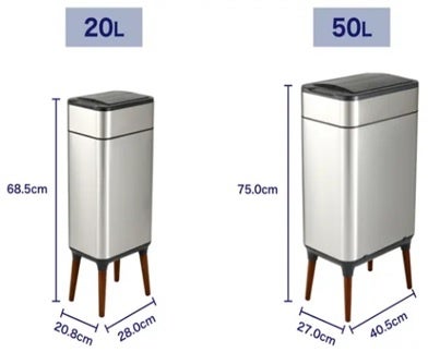 センサーに手をかざす際、腰を曲げずに楽に開閉できるように、日本人の成人男女の平均身長を元にベストなセンサー位置を計算。また、設置する場所、シーンに合せて脚を取り外しても使用できます。脚があることで本体下に空間ができ、電池式でコードレスなのでお部屋のお掃除を邪魔しません。容量は20Lと50Lの2種類。ご家庭の人数や置く場所に合わせて選べます。さらに、大容量スクエア型なのでセットした袋を隅々まで使えて、袋の取り出しもスムーズです。