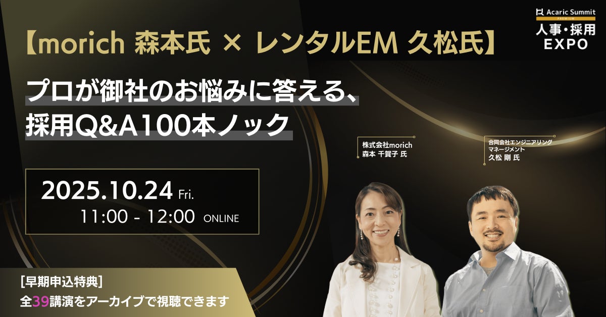 【累計1万1千名以上の人事が申込・参加】日本を代表するHR企業・オピニオンリーダーが集結!「Acaric Summit Premium 人事・採用カンファレンス -2025 Autumn-」