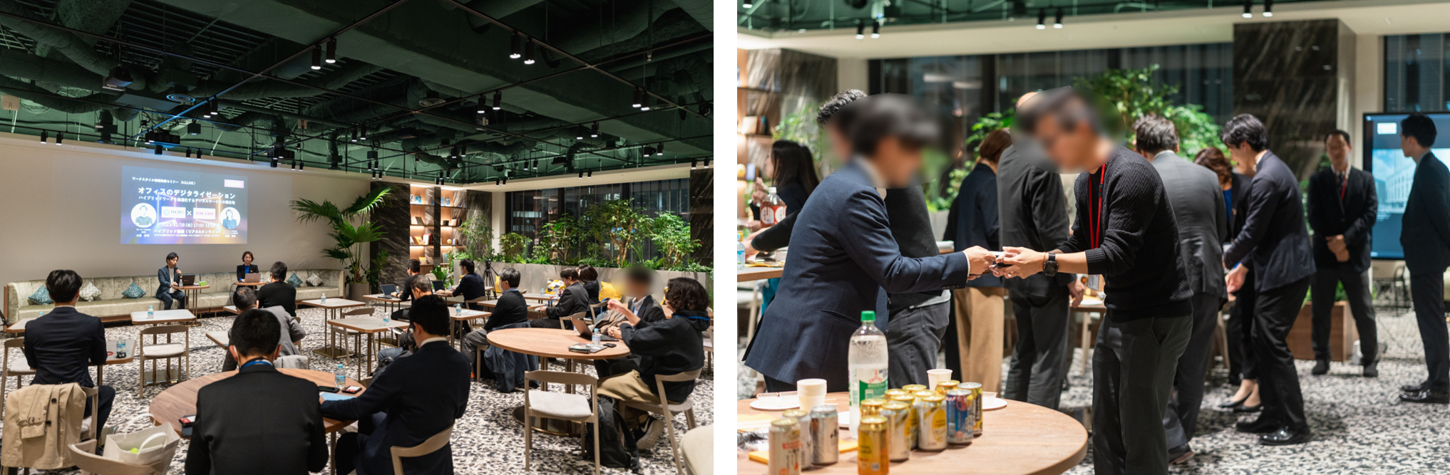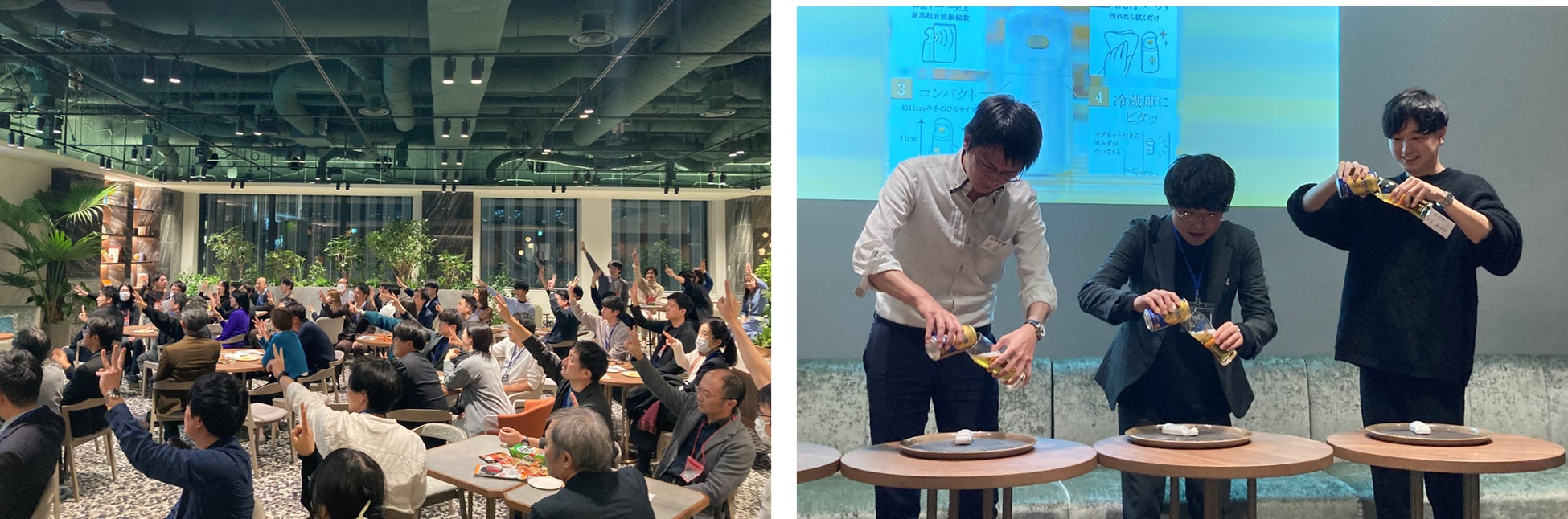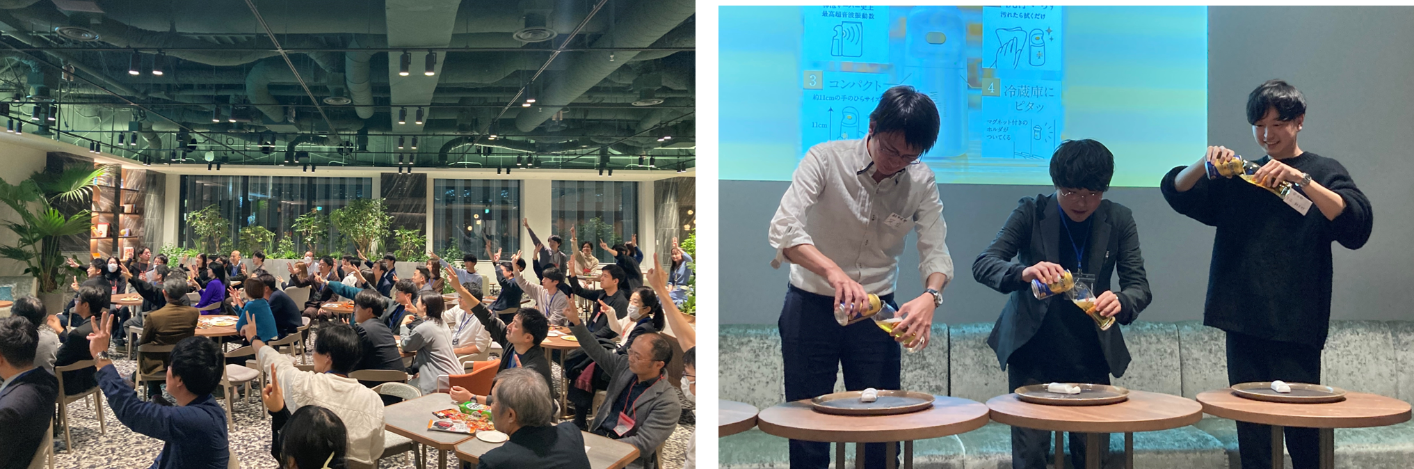 飲料メーカー主催のセミナー・試飲会を実施。社内外交流の場として本社エントランススペースを活用。