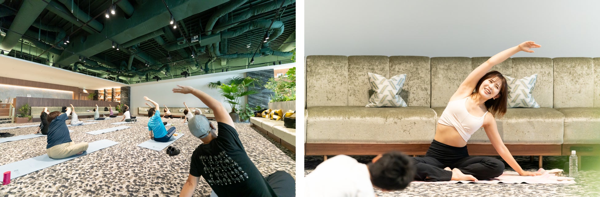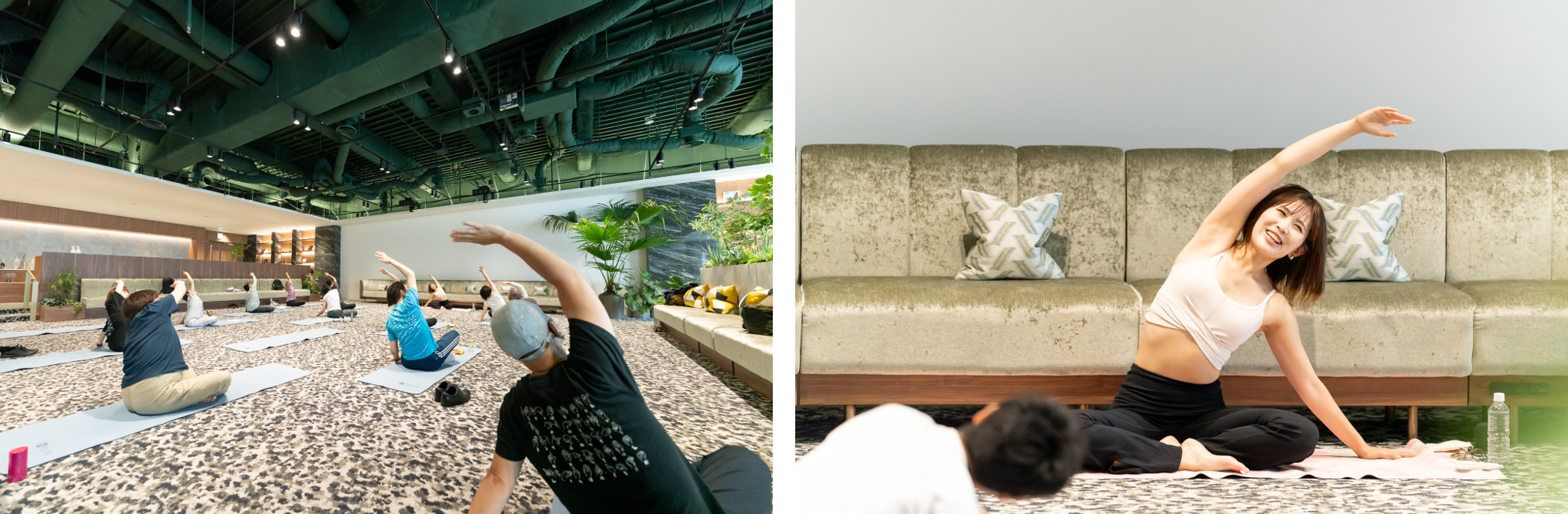 周辺住民・ワーカーの方々向けに本社エントランススペースを一般開放し、月に1回朝ヨガイベントを開催。