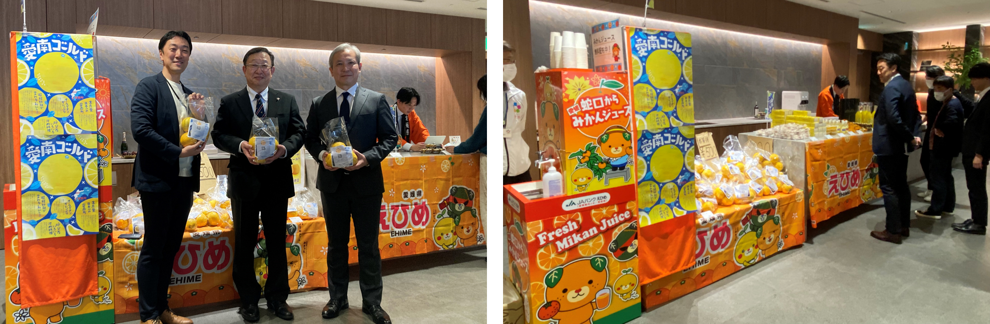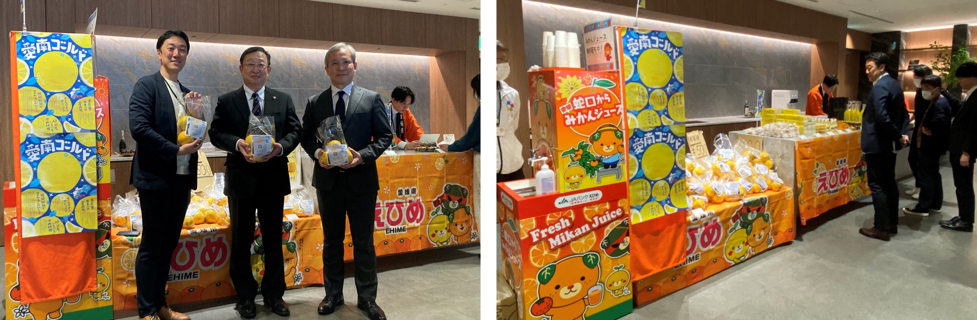 愛媛県愛南町と連携し、特産品マルシェ・「蛇口からみかんジュース」試飲会を実施。