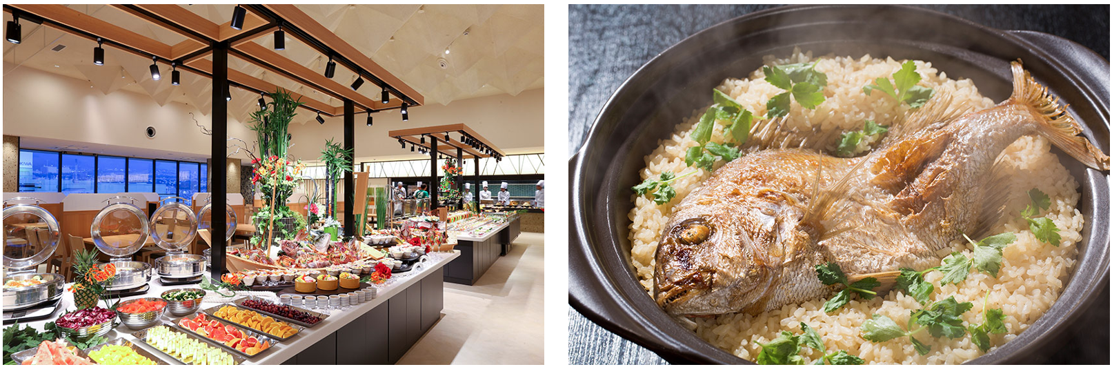 大分の新鮮食材、九州各県のご当地メニューが楽しめる「九州を丸ごと味わい尽くすグルメバイキング」。地元水揚げの新鮮な海の幸はもちろん、ご当地食材を和洋中のメニューにアレンジした、目移り必至のバイキングを別府湾や別府の街並みを眺める最上階のレストランでお楽しみください