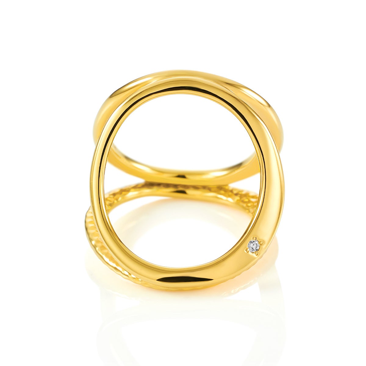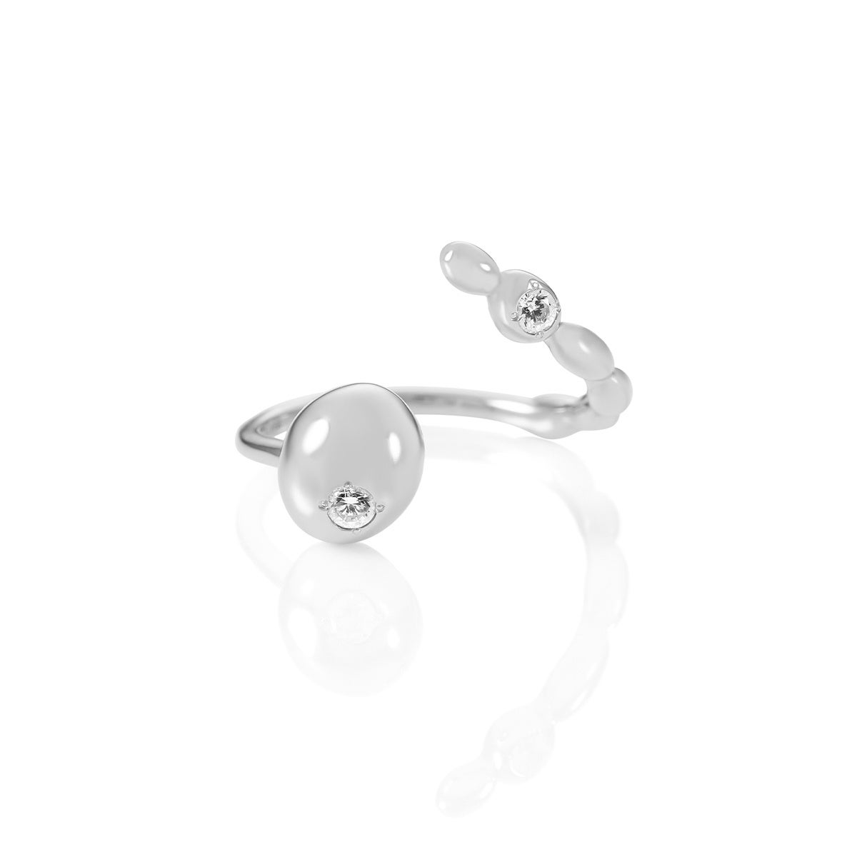 滑らかな曲線美と立体的な美しさが際立つシリーズ。風が吹き抜けるような軽やかな自然の”空間”は有機的な地金のラインで、その隙間からこぼれる光はストーンの密やかな輝きで表現。指を通す面によって印象が変わるリングは、一面にだけニュアンスを施して「Jewel Flow」らしい遊び心をひとさじ。