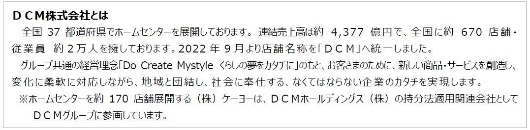 全国でホームセンター事業を展開するDCM株式会社(東京都品川区、代表取締役社長:石黒靖規、