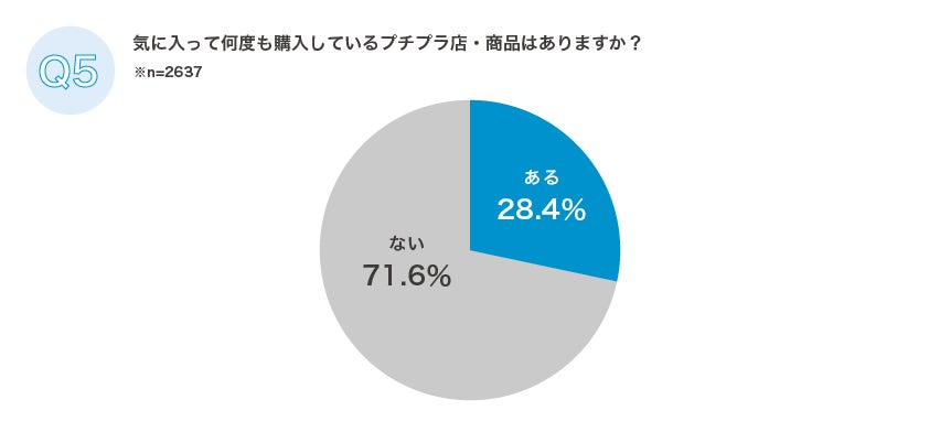 【Q5】「気に入って何度も購入しているプチプラ店・商品はありますか?」という問いに対して、「ある」と回答された方は約3割(28.4%)でした。(n=2637)