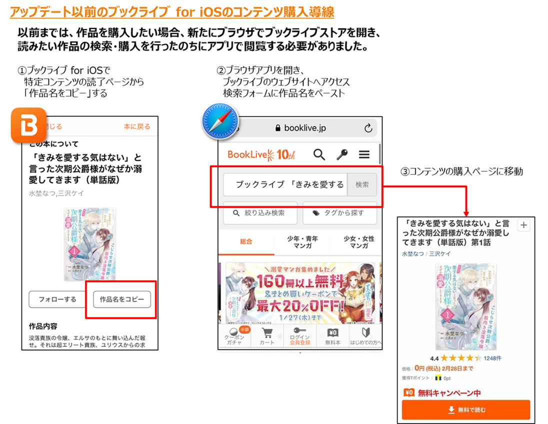 今回のバージョンアップは、2022年3月30日のApp Storeガイドライン改訂を反映し、実施に至りました。当社では今後も皆様が新しい本との出会いをよりスムーズに行えるための機能拡充を目指していきます。