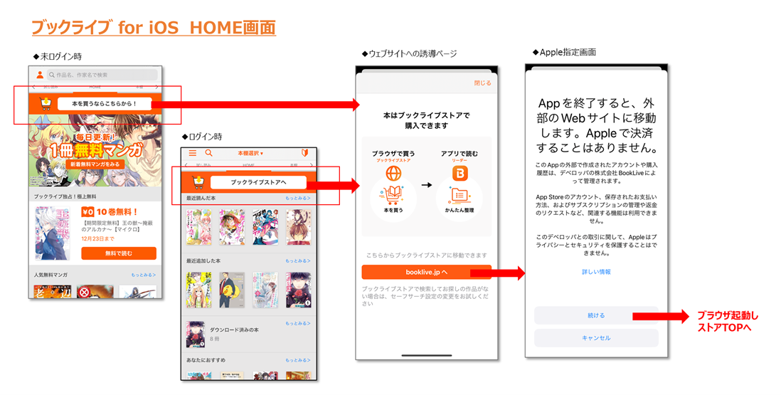 凸版印刷株式会社のグループ会社である、株式会社BookLive(本社:東京都港区・代表取締役社長:淡野 正、以下当社)は、運営する総合電子書籍ストア「ブックライブ」のiOSアプリ(以下、ブックライブ for iOS)の最新バージョンを公開しましたのでお知らせします。今回のバージョンアップでは、ブックライブのウェブサイトへ誘導するリンクを追加しました。