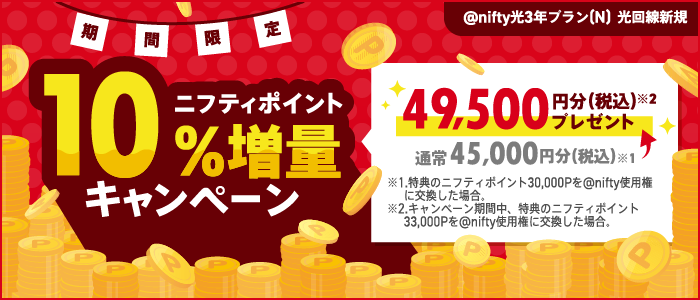 ~通常最大45,000円分(税込)のニフティポイントを期間限定で最大49,500円分(税込)に増額~