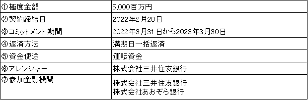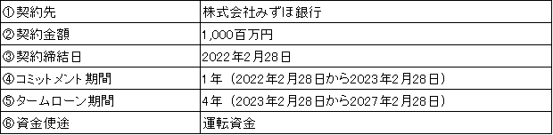 当社は、社会情勢が大きく変化する中、機動的かつ安定的な資金調達を実現し、資金繰りの安定性確保を目的として本契約を締結する予定です。今後も環境の変化に柔軟かつ機動的に対応し、さらなる事業拡大および企業価値の向上を目指すため、取引金融機関と緊密な連携を図ってまいります。